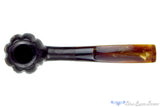 Admittedly making a pumpkin out of an apple is a little tricky but carving that pumpkin into a jack-o'-lantern was a delight for our head carver, Jesse Jones and restoration techs, Zac Cavinee and JD Gombarcik. Fitted with an acrylic stem and engineered with a smooth, open draft, this Halloween 2025 Blue Room Briars pipe even has a hand cut slot to assure a magnificent smoker throughout the entire year. Although none more appropriate for the seasonal celebration, we offer this carved smoker with a wire brush finish and an evil grin that even glows in the dark......MUHAHAHA!