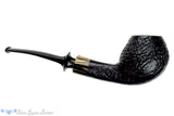 Growth rings ripple down from a smooth and red rim on this German handmade Bonsai Pipe from Tobias Höse. The teapot bowl is articulated despite the sandblast finish and the subtle flare in the sinewy shank is enhanced with the flared saddle of the bent stem. Adorned with sand brindle, this black sandblast brunette beauty has a wide chamber and a conical chamber with a draft hole dead center for a consistent smoker from start to finish with a minimum of relights and an expectation to smoke every last morsel of packed tobacco.