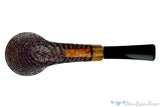 Be it the well articulated and exquisite patterning of the carved rusticated finish or the mix of texture and color, this Brian Madsen dublin is replete with detail and juxtaposition, packaged in a lightweight comfortable smoking vessel at an extremely reasonable price. Effortless in the draw and marvelously bevelled at the domed rim of packed birdseye, this Danish darling is destined to deliver delicious bowls for generations of smoking pleasure.