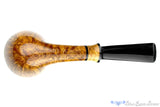 Celebrating a decade of professional pipemaking, Danish carver, Brian Madsen created no less than ten handmades of the same relative shape for the occasion, each with an insert of masur birch. This is the sixth in the series and features a contrast smooth finish and straight grain around the stummel and a wide rim of densely packed birdseye. Unmistakably Danish in design, this handmade has a flared saddle and a delightfully smooth draw to support the sweet-spot sized and versatile chamber. Suitable for almost any genre of tobacco, this comfortable clencher is a milestone in Brian's career and gets us very excited about what the next ten years will bring.