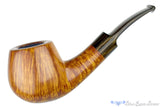 Finished smooth with high-contrast, golden delicious hues, this densely packed and flame grained apple from Danish carver, Brian Madsen, is further enhanced with a saddle stem of caramel and black swirled ebonite brindle. Lush in its thick proportions, this bent features all of the time tested engineering that makes for a great smoker, composed in a package of briar's beauty with a stark contrast of plateau along the bottom of the stummel. Underbent and marvelously easy in the draw, this heirloom smoker is bound to be a favorite for generations.
