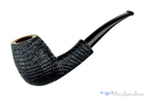 Danish carver, Brian Madsen, chose a carved finish to augment the subtle curves of this rusticated and bent egg. Tapered in the stem and narrow in the chamber, this bent briar does have some heft but just enough bend to clench for a time and is sized to smoke a shag cut or straight virginia behind some thick walls for a flavorful and cool smoke. Polished smooth and finished in a contrasting tan, the rim and flat bottomed shank's face provide a dynamic touch to this well shaped Danish smoker with a perfect draw.