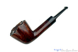 Thick in the chamber's walls and blessedly kissed by plateau at the rim, Brian turned this interesting piece of briar into a well finished and muscular smoker. Perfect for virginias and stout flakes, the cylindrical inner walls will make packing and maintaining an ember a piece of cake. Open and smooth on the inside as it is on the out, this lightweight Danish dublin has a long career of great bowls to look forward to.