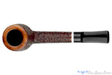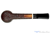 Meticulously carved into a rustic finish, this classic shaped lovat from Brian Madsen has a smooth, polished rim and a stem insert of acrylic ivorite that fits flush to the shank. Lightweight and still thick walled, this comfortable clencher has enough room for a strong Balkan blend, though this Danish handmade draws so smooth that it will do very well with any favorite tobacco blend.