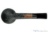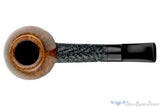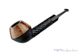 A longer shank and a deeper bead around the bowl set this two toned carved rhodesian handmade from Danish pipe maker, Brian Madsen apart. The striking contrast draws all the attention to the smooth top half of the bowl and the short saddle stem. The chamber is cylindrical and situated in the sweet spot of size for a versatile smoker destined to make any favorite tobacco even more pleasurable in this lightweight clencher.