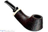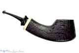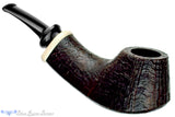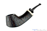 Sandblasted in the rich and dark finish that Chris prefers, this slightly bent volcano is further adorned with a shank matching band of ivorite for well executed finishing touch. The cant of the volcano bowl and the perfectly beveled edge around the bottom of the stummel, as well as the indent on top of the shank's transition to give it just enough definition without ruining the graceful lines, all point to the details only available in a handmade pipe. What really impressed us is the perfect drilling and the draw, smooth and open to make the most of the wide chamber in this American-made briar.