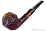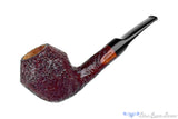 Ever so slightly bent this handmade Workshop pipe from Chris Morgan is right on the edge of being too heavy to keep clenched comfortably.  Plenty of briar makes a thick wall around a large chamber, shape in a cylinder for a consistent smoker from top to bottom.  Drilled to offer the benefits only a handmade smoker possesses, but incredibly affordable, this Workshop rhodesian is finished in a dark and burgundy blast and comes highly recommended for any tongue friendly or large cut leaf.