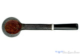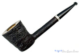 Adorned with a double ring band of silver, this wide rimmed and thick walled dublin sitter from Mr. Rigsby's workbench in TX, has a long round shank and a beautifully bevelled birdseye polished rounded and dramatic bowl. Even more impressive than the natural beauty of the briar on display here is the smooth and marvelous draw that is not unusual to Colin's pipes. Lightweight for its size, a clue many enthusiasts know will bring great rewards in its smoking quality, this tapered clencher is destined for greatness, no matter what tobacco finds its way into the bowl.