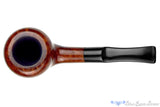 A palmful of massive bowl insulates a wide and conical chamber on this bent and saddled Bari Senior Mandarin estate pipe from Denmark. There was some charring in this capacious smoker so a bowl coat of sodium silicate has been added to avoid any issues in its future. There are also some significant handling marks along the front top of the bowl where it was tapped or dropped. Drilled all the way to the bottom and smooth in the open draw, this inner rim darkened and well smoked Danish briar is still in good shape and worthy of a favorite and tongue friendly blend.
