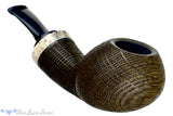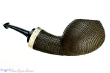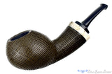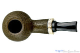 Made from semi-petrified bog oak that was buried for thousands of years, commonly referred to as Morta, this sandblast from Dirk captures the dynamic and geometric beauty of the material. Capped at the end of the shank with antler, this Danish influenced and saddled smoker has a compelling organic feel with a playful use of both color and texture. Not quite a pure black, this specimen from Germany is on the lighter side and has tones of chocolate brown and olive greens, depending on which way the light hits. And of course, like all of Dirk's pipes, the engineering and draw are simply flawless.