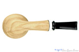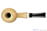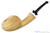 Olive wood pipes, while not unheard of, are still fairly rare, especially at the artisan level of pipe making, and this brilliantly carved smoker from Dirk Heinemann is a remarkably pale and clean specimen of the material. Dirk went a step further to set this pipe apart by applying a sandblast finish, capturing the long striations that swirl around the pipe and giving a distinctive texture that grips the fingers. A simple piece of ivorite caps the shank and the result is another dramatic mix of texture and extremes in this highly smokable pipe. Be aware that this pipe will color in time with use, becoming richer and slightly darker in tone, likely to bring out the rose and green tones inherent to the wood.