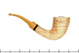 Olivewood pipes are quite striking with their vivid wheat coloring and usually a tint of green, though this dramatic bent horn from Dr. Bob features a subtle rose hint in the wood. Through time and use these pipes will darken in color and richen in tone showing off their age and character. Stemmed with a butterscotch acrylic, this large smoker has a deep and conical chamber just narrow enough to house a virginia based blend, though any ribbon cut will do particularly well here.