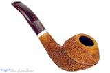 Neatly rusticated into a gnarly and easily gripped finish, this bent bulldog from Vermont pipemaker, Dr. Bob, has a classic red brindle stem and an insert of white acrylic. Graced with a modern single bead around the bowl and finished completely smooth at the rim for a finished look, this deep and mostly cylindrical chamber is coned at the bottom. Extremely versatile in its geometry, this handful of briar will do well with any genre of tobacco and always be cool in hand while smoking.