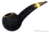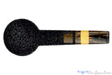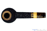 Like all the glorious hawkbills that Bob Kiess of Dr. Bob fame has resurrected from the old Italian shapes, this very large black rusticated smoker has an enormous amount of wood insulating a perfect shaped chamber. Well drilled to not just be a great smoker, but to easily pass a cleaner, this massive beast of bent shank is adorned with a wide insert of box elder, and a sand brindle stem that pulls the golden tones together. While clenching may be difficult for longer periods with this large a bowl, a comfortable chair will definitely make the additional girth worthwhile.