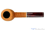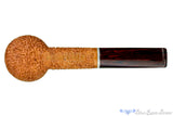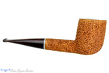 This canted blonde billiard from Dr. Bob Kiess carries his trademark and intense rusticated finish. The smooth rim is cut back from the chamber's angle, making lighting while watching the edges a simple thing. Adorned with a subtle and slim slice of grey acrylic, the cumberland brindle stem sets off with striking composure. Light enough to clench and large enough to enjoy any cut or blend, this delightfully tactile smoker of smooth, open draw states in a clear voice that there is nothing wrong with looking good while you sit back and relax.