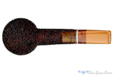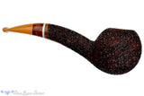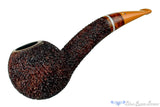 Heavily adorned and wonderfully toned in its multi colored profile, this hawkbill from Dr. Bob is another in his fully rusticated offerings. An American classic of redwood burl and briar, the finish is a dark mahogany set off by the butterscotch stem. Deeply masculine and just slightly more elongated than other pieces of this shape, the pictures will never capture the most impressive part for the enthusiast - the fantastic draw of smooth, open air. Fitted with a delrin tenon, this gorgeous 'bill is everything we could hope for in an almost forgotten classic shape.