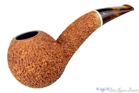 Blonde and finished in Dr. Bob's own fantastic and tactile rustication, this carved hawkbill is a bit of a bombshell. Incredibly consistent around the whole of the stummel, this bent shanked and straight drilled wunderkind is fitted with a grey brindle stem. Like all of Bob's pipes, the draw is superb and as those who already sing his praises know, this well executed and difficult shape will smoke ridiculously well.