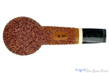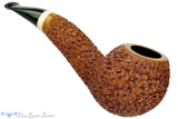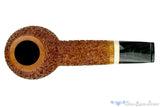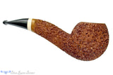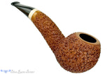One of his favorite shapes in one of his favorite finishes, this Dr. Bob rusticated hawkbill is less than five inches long and holds a poised bend deep enough to make for a comfortable clencher. Like all of the good doctor's rustic finishes, this brindle stemmed smoker is delightfully tactile and promises a cool feel in the fingers no matter how long it takes to smoke to the bottom. The chamber is slightly conical and is drilled with an excellent draft with a draw that can only be found among handmade briar.