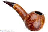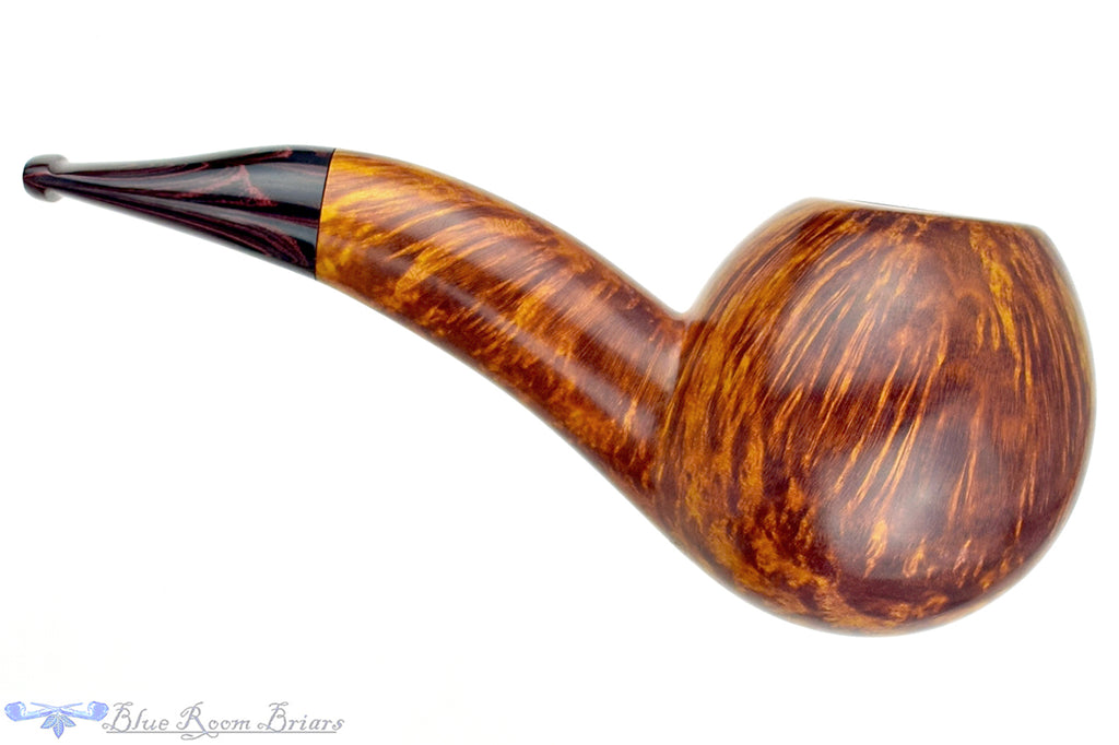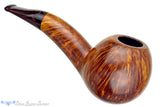 Finished smooth in high contrast with acres of cooperating grain, this signature shape from Bob Keiss hits all the sweet spots for aficionados of the hawkbill shape. Note the perfect and perpendicular arrangement of the rim's plane and the shank's facing. Additionally the stem, while definitely tapered, protrudes straight off the shank. These large bowled and massively chambered smokers are a delight to both hold and draw and have already garnered a large following of enthusiasts who prefer them for their exceptional smoking characteristics.