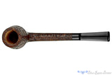 Don't let the massive size fool you, this tall rhodesian from American carver, Doug Finlay, is made from a fine specimen of briar and presents in a lightweight, if somewhat lengthy, package of well shaped design. A single bead graces the widest part of the tall bowl and the sandblast is distinct across the whole of the stummel. The extremely large chamber is well drilled, as one would expect from Doug's workshop, and the draw is open enough to support such a magnum capacity. It may take a few hours to smoke all the way to the bottom, but it will be a supremely satisfying experience from beginning to end.