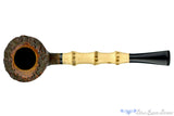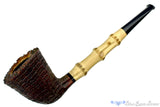 Utilizing the best grained part of the block, Doug cut this dublin right out of the burl's plateau. The result is an astoundingly compelling ring blast finish that is both distinctive and hypnotizing in hand. Capped with a rim of plateau featuring a wide, smooth bevel of birdseye and three knuckles of bamboo, this lengthy tapered smoker has a nicely sized chamber to match all the detail outside. Lightweight and in possession of a smooth open draw, this steel reinforced showcase of straight grain is destined for generational enjoyment.