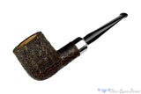 Terrifically sandblasted to reveal cascading and consistent growth rings around the wide and thick bowl, this muscular pot from American carver, Doug Finlay is made even more impressive with a military mounted stem. The wide chamber is well suited for larger and broader cut tobacco, though a favorite aromatic will do extremely well in this easy to clench and maintain briar.