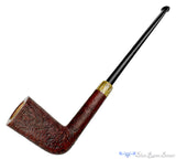 Arne Jacobsen was an architect and prolific commercial designer from Denmark who worked through the mid-century modern design revolution. In much the same way Bing Crosby was given name to a pipe shape, Arne Jacobsen is still celebrated today with the long, lean, and tall dublin seen here from American carver, Doug Finaly. Ferruled with earth toned and colorful acrylic, this red and rusty sandblast was left smooth at the rounded rim and as expected, features a marvelously deep chamber narrow enough to smoke virginias for hours at a time while still being lightweight enough to clench. A marvel for any lover of the sweetest of tobaccos, this well designed briar draws like a dream and will be a joy to pass on for generations.