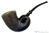 This sandblast nautilus of cornucopian design features a tight and distinctly detailed finish with a an ebonite draft fitted into the stummel. Deep and slightly conical in the chamber this well constructed briar has no bowl coat and when married to a favorite blend will begin to season and produce the nuanced flavors only available to those who practice smoking a singular blend in a particular pipe. We recommend a virginia flake, but any blend will do well with such a smooth and sublime draw from this American artisan pipe from Doug.
