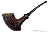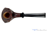 With a curved elephant's foot bowl and two symmetrical panels on each side, this shield from American carver, Doug Finlay, isn't an easy shape to pull off. Add to that the cooperation from the briar's grain and the meticulous sandblast finish; this pipe is already spectacular. Using an ebonite crown ferrule for balance and a brilliantly made long stem with military mount for function, this is a tour de force for any pipe maker. What really sends us over the edge is the terrific draw - smooth and just right for the deep chamber. Not a surprise for Doug's repertoire, where every pipe is destined to be a great smoker.