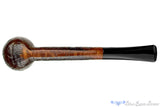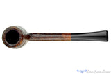 Made in England, this Prince of Wales liverpool estate pipe is finished with a sandblast and features a compelling narrow chamber with a slightly tapered design. With an smooth draw this lightweight English smoker is both a pleasantly comfortable clencher and a particularly well suited smoker for the enjoyment of sweeter blends, even straight Virginias and shag cuts. A ribbon cut aromatic will also do tremendously well here. There is some significant darkening around the rim that could not be removed as well as along the finish of the bowl but this all day companion is still in great shape with a draft hole all the way down at the very bottom.