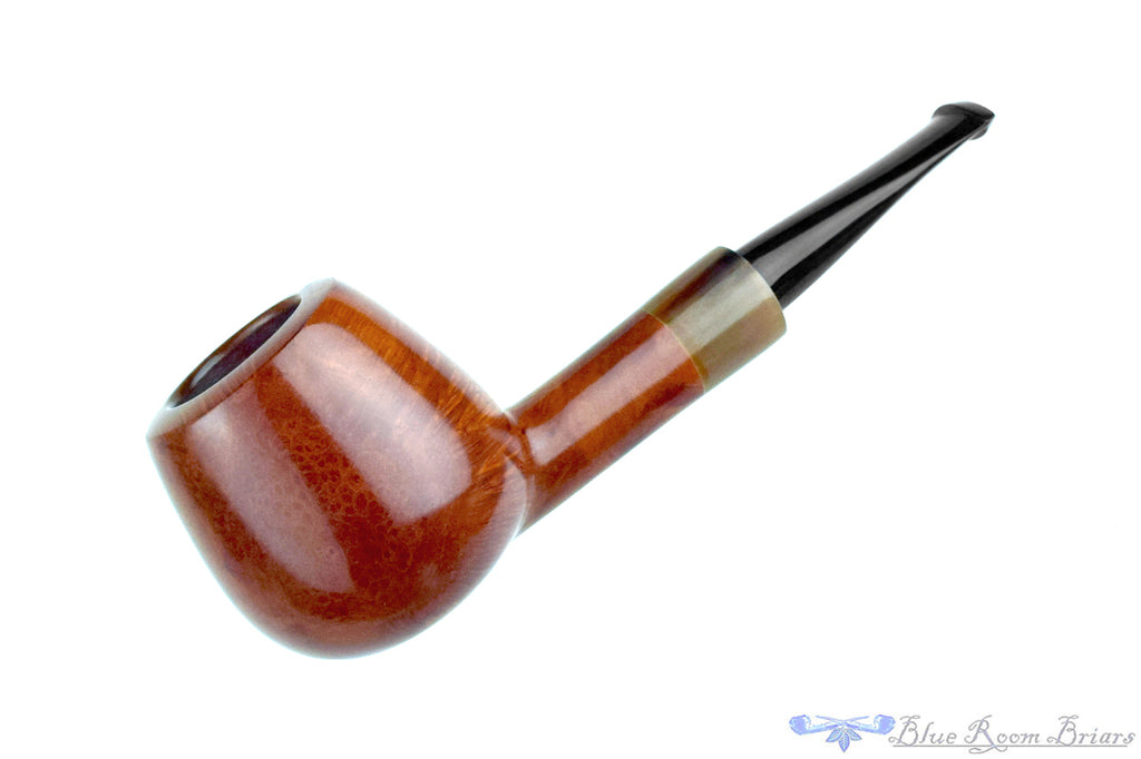 Lucious in the plumpness of the heavy cheeked bowl with a touch of visual heft around the bottom and given just a touch of expanding flare in the shank and buffalo horn ferrule, this Danish handmade from Erik Nielsen is absolutely stuffed with tight birdseye on both sides of the thick walled bowl. The wide chamber is rounded at the bottom and has plenty of room for a favorite Balkan, English, or Lakeland blend. Light enough to clench given there isn't too much length, this gorgeously grained and shaped smoker may be a looker, but make no mistake, this is a sure thing for those who want both a satisfying smoke and still look good while getting it.