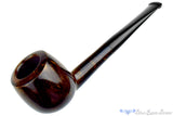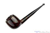 While this straight and tapered apple is finished smooth with some contrast, the grain in the dark and rich colored surface isn't dynamic enough to justify a higher grade for the Danish carver. The shank is slightly taller than round for a vertical oval shape that ultimately allows for a bit more briar underneath the chamber at the bottom of the thick walled bowl. Wide and cylindrical, this lightweight and comfortable clencher promises a consistent smooth draw from the char to the last morsel at the bottom with a minimum of relights.