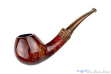 Stemmed with eight-swirl brindle, this bent and antique red apple smooth pipe from George Boyadjiev is another masterfully shaped example of his neo-Danish voice from Bulgaria. The well grained finish is gorgeous, though it may no be the generationally grained specimen that costs twice as much, this redheaded beauty does have all the details of a flared saddle and perfect draw and draft to be passed on to grandkids for its smoking prowess.