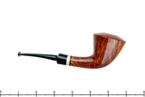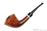George is an exacting craftsman taking extra care to grade his exemplary shapes solely by the grain pattern's perfection and finish. This high-contrast dublin is smooth and it isn't a stretch to describe as densely grained with a gorgeous patch of birdseye across the broad, domed rim. Still, not as impressive as his AA grade, this stunning amalgam of tan, burgundy, and chocolate did qualify in George's consideration as an A grade. Featuring the adornment of ivorite and rounded contours in the saddle's shoulders, this deep chambered smoker makes it easy to be mesmerized by its lines and promise of sweet smoking ability.