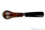 Finished in a dark and rich, golden brown, this bent and saddled Genod dublin features lovely, dense cross-grain and a nickel band for a touch of bling.  Drilled with a conical chamber that is wide at the top but much narrower at the bottom, we recommend this French-made bent beauty for those sweeter aromatics.  Well drilled and free of any fills or flaws, this tall bowled dublin is also light enough to make an excellent clencher from the beginning of the session all the way to the end.