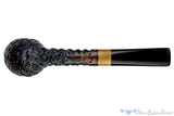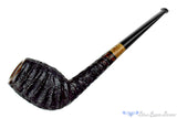 Oval shanked and slim in its profile, this handmade belge from South African carver, Charl Goussard, is meticulously carved in fine detail and adorned with native Waboom featuring a lace-like grain pattern. Tall enough in the chamber to handle a simmering ember for hours at a time, this straight and tall smoker of forward cant is narrow enough to house a straight Virginia for those who love the grassy goodness that only those blends provide, though any genre of tobacco will do well in this tapered and smooth rimmed beauty from south of the Equator.