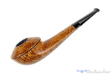 Straight grain wraps all the way around the single bided bowl while both rim, shank, and the entire underside of the stummel is framed with dense birdseye on this smooth Eskimo from South Africa (where Eskimos are quite rare indeed). Finished smooth in a contrast of light and dark grain, this tapered and wide shanked bombshell of briar has a pinched saddle and a chamber just deeper than it is wide. As functional a smoker as the curves are lovely to look at, this handmade is, like all of Charl's work, exceptionally well drilled and sturdy for a generational pipe worthy of any favorite blend.