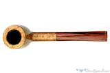 Ask any great carver, and they'll tell you a simple billiard is not so simple to get just right. Charl has always excelled at classic shapes, but put a stellar specimen of briar in his hand and his deep love for the special characteristics of the wood is evident in his work. Masterfully shaped, this naturally high contrasting and cross grained smoker is replete with a brindle stem, and with many years and generations of satisfying bowls will color darker bringing auburn tones in the wood to match. A stunning piece with a large chamber for any great blend, this heirloom pipe is destined for a treasured place in a rotation of favorite smokers.