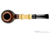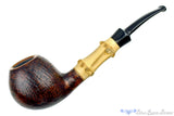 Charl's overriding influence can be hard to pin down. We have seen him make beautifully proportioned English classics, but he is equally at home with a more contemporary aesthetic. This large sandblast, bamboo apple is a little bit of both. Scaled up from many similarly styled Danish and American pieces, this capacious apple has a gentle yet very distinct sandblast finish reminiscent of antique leather. Crowned with a smooth rim and adorned with two, clean knuckles of bamboo, Charl has once again proven his versatility as South Africa's best carver.