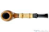 Bamboo shanks are not always indicative of a smaller pipe. This well grained, smooth, tulip from South African carver Charl Goussard comes in at almost seven inches in length, but weighs under two ounces - not easy to do without the addition of bamboo. The larger bowl provides a perfect backdrop for some spectacular, tightly spaced birdseye and this gentle bend's soft shape will make this pipe feel great in the hand during those longer weekend smoking sessions.
