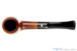 Nicely grained and perfectly oriented to the flattened heel, this Casseloni Rosetta estate pipe is almost a sitter in that it won't balance until its full of tobacco.  A long saddle stem made of acrylic that will never oxidize with enough bend to offset the thick walled and tall billiard bowl, this Italian smoker has a wide button for a comfortable clench.  The cylindrical chamber is also wide with plenty of depth for long sessions of a favorite English or Balan blend.  There is some darkening along the backside of the rim but this densely grained and smooth finished clencher is still in outstanding condition with an excellent draw.