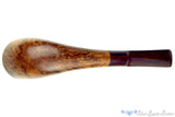 This gorgeous horn from Italian maker Radice, is an eye-catching piece. The grain is well contrasted, the form elegant and sinewy, and the stem a comfortable hand-cut section of brindle. While not an overly heavy pipe,there is a large amount of chamber space packed in very carefully with no thin spots and no excess material to increase the weight. This pipe may have been smoked once, but is in otherwise excellent condition.