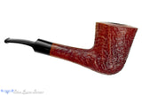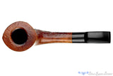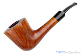 Straight grained and finished smooth along the left side with a high-contrast finish while spectacularly ring blasted briar envelops the right side, including the domed rim, this handmade Italian estate pipe from Savinelli is part of their handmade Autograph series. A round shank meets with a replaced stem of ebonite provided in our workshop and tuned up to be an even better smoker than the original, balances with a tall bowl and a strong chin. In great shape, though there is some rim darkening on the back of the bowl, this capacious and palm friendly smoker is recommended for any tongue friendly or large cut leaf. Note that this pipe comes with its original box and sleeve.