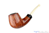 An exceptional specimen of briar, this gorgeously finished high-contrast smooth straight grained bent billiard from Jared Coles is a stunning display of the inherent beauty of pipe's favorite medium. Stemmed with a keyed saddle of black ebonite, this cream colored stem brings out the both the dark and soft tones of the stummel for a dramatic presentation. Flawless wood coupled with an under bent shape, this clenchable and wide chambered smoker is an heirloom quality piece meant to be cherished for many generations of collectors and enthusiasts.