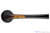 Not quite thin enough in the shank to be pencil, this straight tapered brandy from Jared Coles is still thin enough to be less than a full ounce of mass and carries a wide enough chamber to satisfy any English blend connoisseur. There are peeks of scarlet and red in the finish though the polished and slightly rounded rim of this American handmade is smooth in a high-contrast display of cross grain. Designed to be held between the teeth effortlessly while enjoying a handsfree smoke, this virile and well insulated briar just happens to be as good looking as it will be good smoking.