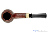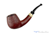 This Martin Paljesek handmade bent billiard from Slovakia, known to his fans as Jesek Pipes, features a tight and ring revealing distinct sandblast finish. The long and bent, round shank tapers to a shank extension of horn and a crown saddle stem. Lightweight and balanced, this deceptively large chambered smoker is drilled cylindrically for a consistent smooth and open draw from the beginning of the smoking session all the way to the satisfying end.