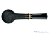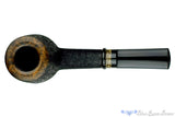 This rusticated round shanked billiard from Martin Paljesek of Jesek Pipes fame, looks as if the wood has been weathered and eventually cracked with extreme age. Both subtle and delightfully tactile, this dark briar is adorned with a ring of buffalo horn and an incredibly detailed insert of areca palm nut, punctuated by a beautiful birdseye rim of rounded smooth polished briar in a chestnut finish. The rounded sharp saddle makes for a stem of considerably thin comfort at the bite point, and like all of Martin's pipes, the draw is just right for a bowl geometry set to bring forth the natural sweetness of the great virginia leaves and flakes.