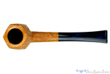 Perfectly panelled, gorgeous, light, lean, and blonde, this smooth rimmed billiard is well blasted and matched with a vibrant and dark blue stem of ebonite brindle. Easily clenched and marvelously drilled, this bombshell of lithe briar will never be a disappointment when set to task, though it's pretty stunning if just left on the rack too.