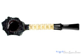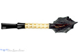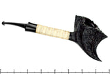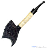 Featuring a shank made from a shark's spine and a massive stummel of concave panels finished in a black sandblast, this year's Halloween pipe from Jesse is a massive smoking affair. Sculpted at the saddle, this large pipe is actually three pieces so general maintenance and future restoration is much easier. The spine is removable from the stummel as well as the stem on the other end. Wide in the chamber that sits beneath a smooth and polished bevel framed by plateau, this American handmade and seasonal celebration of pipe smoking isn't just meant to intimidate, but to be an outstanding smoker all year round.