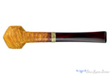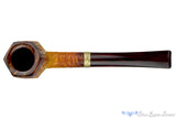 Very dramatic and warm, this hammered brass banded fumed beauty is a bespoke variation for the classic six panel billiard. While it will color slightly with age and use, it will only ever look more inviting the more it gets used. And with a head turning profile as rich and colorful as this, it is likely to get used a lot. Superbly engineered for the absolute best, sweetest, and driest smoke possible, this unique and handmade masterpiece is highly recommended for virginia and sweeter natural blends.